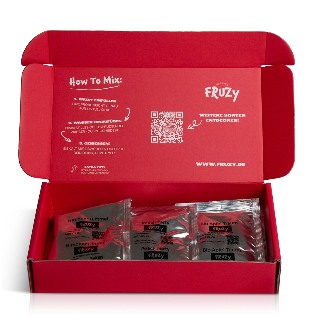 Du willst alle Fruzy Sorten erst mal testen? Dann ist die Kennenlern-Box genau das Richtige!